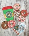 Large coffee cup cookie with an edible image and 6 mini doughnut cookies in an adorable gift box with tag. Choose your set at checkout. I only make 5 dozen cookies per week. Once orders have maxed out, I close all orders for that week. Please get your order in as soon as possible if you want your gift sets for the Holiday week. The checkout process will prompt you to put in the date you would like to pick up your cookies or have them shipped. Orders made by Friday are ready for pick up in Post Falls or will be shipped the following Friday, unless you email me to secure your order for a particular week. For example; if you place an order on Saturday, it will not be processed until the following Friday and it will not be ready for pick up or shipping until the Friday after that.